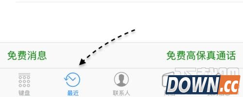 5、当电话结束以后,想要查看通话录音的话,请点击底部的【最近】栏目,如图所示