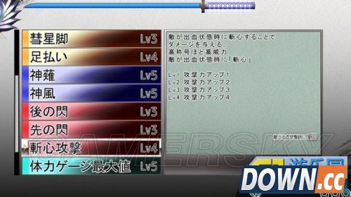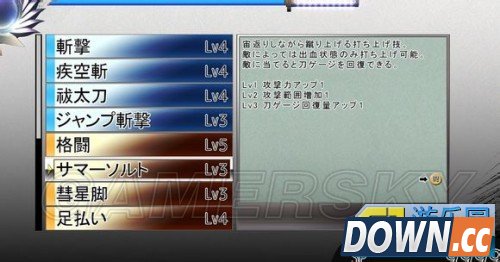 2疾空斩 高速朝着敌人突进并使出斩击,默认键位↑+I, 满级后范围加大,攻击力提升,可在默认键位的基础上按I连打