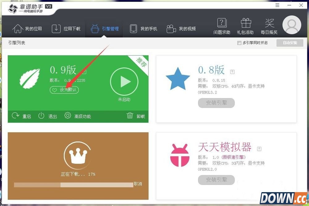 靠谱助手怎么设置引擎呢?使用一个好的安卓引擎,我们在运行靠谱助手的时候才会感觉到流畅不卡,今天酷易软件园小编就给大家介绍一下如何使用靠谱助手设置引擎,不了解的朋友就快来看看吧! 靠谱助手设置引擎方法/步骤: 1、安装下载靠谱助手,打开靠谱助手,然后点击图上的位置,也就是引擎管理!