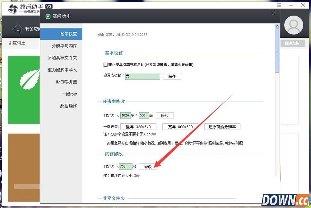 7、安卓模拟器最重要的就是设置内存了,点图下的位置,进行设置,在图下的位置填入适当的内存,这个根据个人需要,和电脑的情况了!