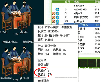 方法二:用户在游戏中时,在该用户身上右键点击,选择游戏好友或游戏黑名单(见下图)