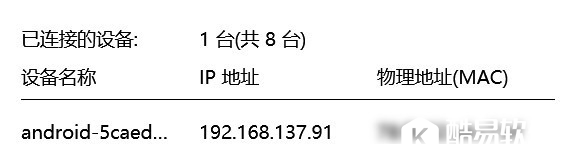 此外,移动热点最大支持8台设备,在页面上会有详细的数据统计,比如IP地址与MAC地址,方便你的管理。