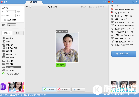 第三步、在弹出的照片界面中,点击选择“一寸证件照”,然后图片会自动出现一个一寸照片锁定边框,我们需要拉动调整图片的位置就行了。完成后,直接点击“裁剪”就可以了。