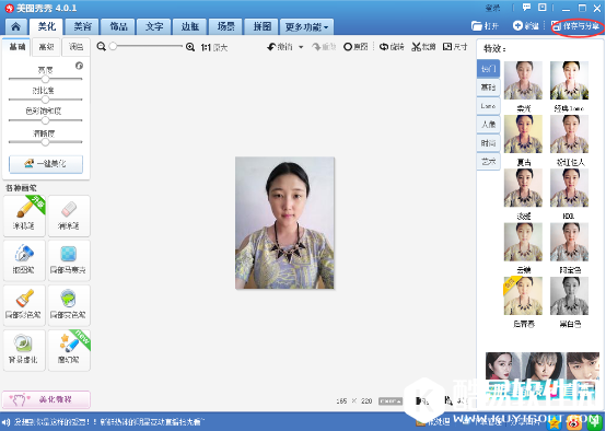 完成后,点击保存。通过以上步骤,一寸照片的制作就完成了,有没有觉得很有用呢?有了这个技能,我们以后需要一寸照片,就可以直接自己在家设置制作,然后去照相馆洗出来就可以了。是不是非常方便,需要的朋友赶紧下载试试吧!