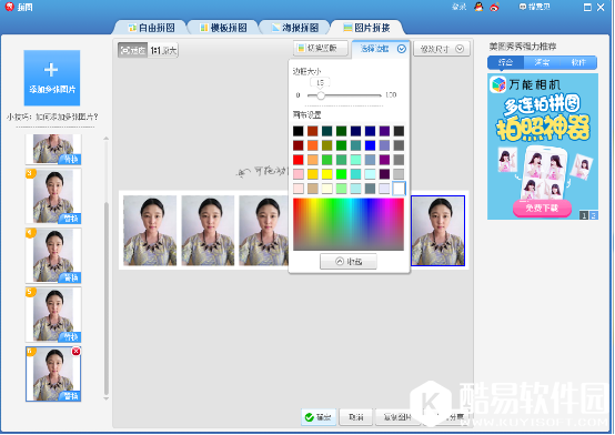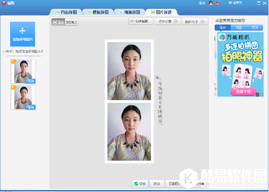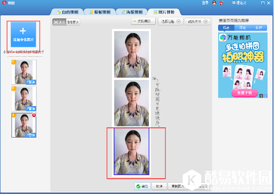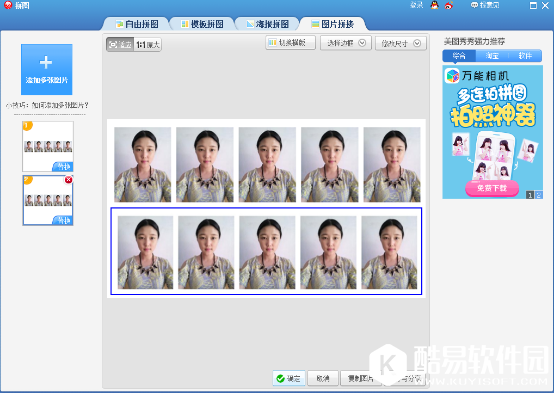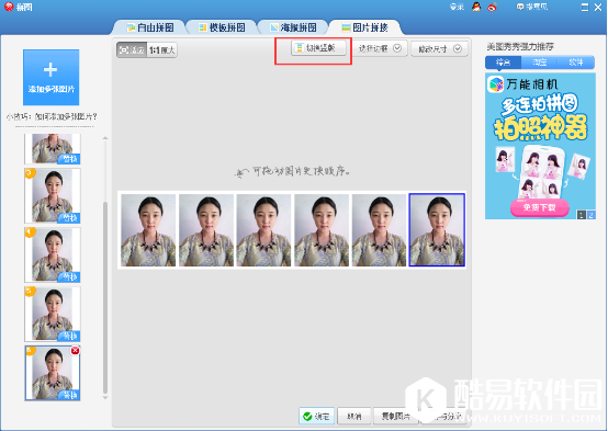 第六步、进入“图片拼接”,然后我们点击左上角“添加多张图片”的按钮。把刚才制作的一寸照片添加进来。