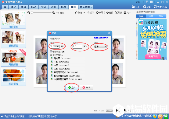 第十二步、点击确定完成回到主页面。然后修改图片尺寸,点击尺寸,设置宽度为11.6,高度为7.8,完成后点击“应用”。