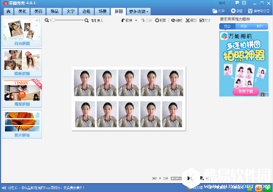 第五步、制作的一寸照片比较多,我们这时候可以直接点击“拼图”的按钮,会出现“自由拼图”“模版拼图”“海报拼图”“图片拼接”四个选项,然后我们直接选择“图片拼接”。