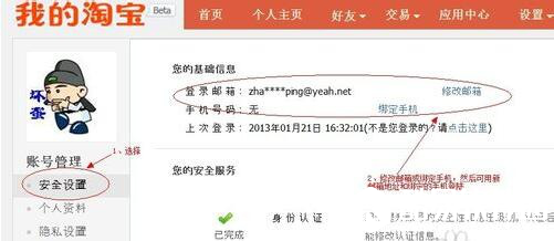 进入页面“账号管理”,选择安全设置,然后在安全设置里可修改以前绑定的邮箱或者绑定的手机。