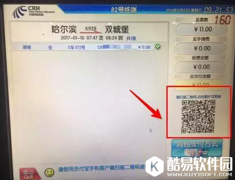 2、选择车次,时间等信息,当确认好所购车票信息无误后,售票员会在确认器上,输出一个二维码图案,就像这个样子的: