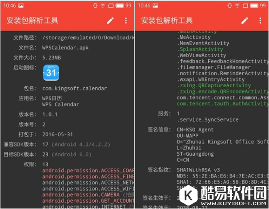 除了能够解析出APK安装包的信息外,这款工具还能够重命名APK文件以及提取App的图标。App提供了三种APK包的重命名规则,能够根据应用的名字重命名APK包。,例如你碰到一个名字乱七八糟的APK,根本不知道这是什么App的安装包,App就可以自动识别这个APK对应的是什么应用,并根据应用的名字重命名了。同时,安装包解析工具还能够把App图标提取到设备的图片目录下,使用起来很方便。 总之,这款安装包解析工具用起来还是很顺手的,有需要的可以试试。 |