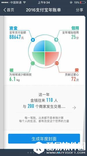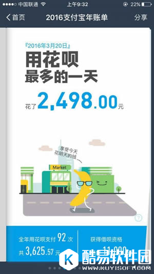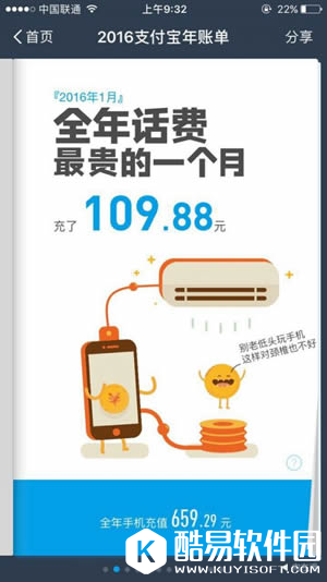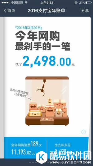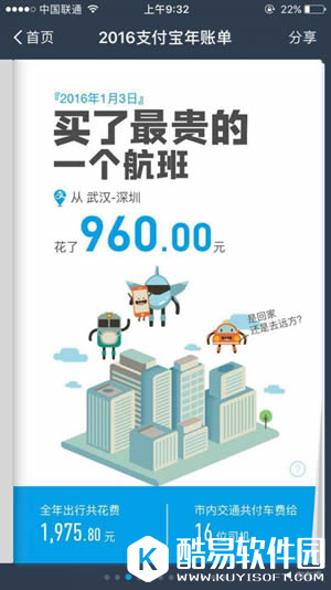 支付宝年度账单怎么查询? 2016个人年度账单包含了2016年的全年的总支出,分别统计了这一年中充话费最多的一个月、用花呗最多的一天、网购最剁手的一笔等,在账单末尾处,支付宝给出了你在全国的排名和你所在地区的排名。
