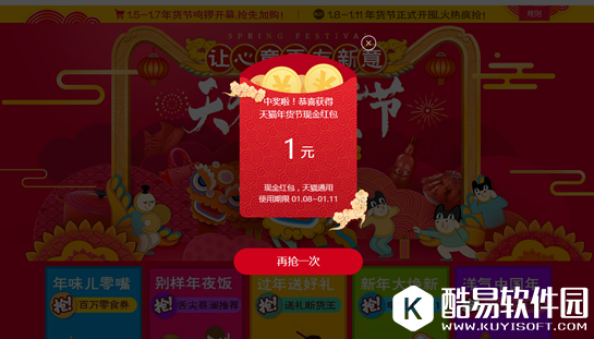 三、天猫年货节红包使用规则1、天猫年货节红包仅限在天猫购买实物商品使用,网游及QQ(网络游戏点卡、腾讯QQ专区)、话费通信(移动/联通/电信充值中心、手机号码/套餐/增值业务)、“其他虚拟类目”商品除外。 2、天猫年货节红包既可以用于单件商品的付款,也可以用于多件商品(所有商品皆在该红包的使用范围内)的合并付款。合并支付时,若合并订单中有分期的订单,则分期订单不支持使用红包。 3、一个天猫年货节红包不可拆分多次使用。 4、如有多个天猫年货节红包,可以叠加使用。 5、天猫年货节红包不得提现,不得转赠他人,不得为他人付款。 6、天猫年货节红包只能在2017年1月8日0:00:00至2017年1月11日23:59:59期间使用,逾期作废。 以上就是小编带来的2017天猫年货节的相关介绍,希望对大家有所帮助。 |