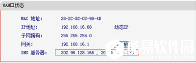 如果你连接了路由的话也可以通过路由来查看你的DNS服务器地址,在浏览器输入地址192.168.1.1弹出路由器登入对话框,通常路由器默认的账户密码均为:admin(登入后可修改)。登入路由之后我们就可以在首页查看到DNS服务器地址了,知道了DNS地址我们就可以来修改了!