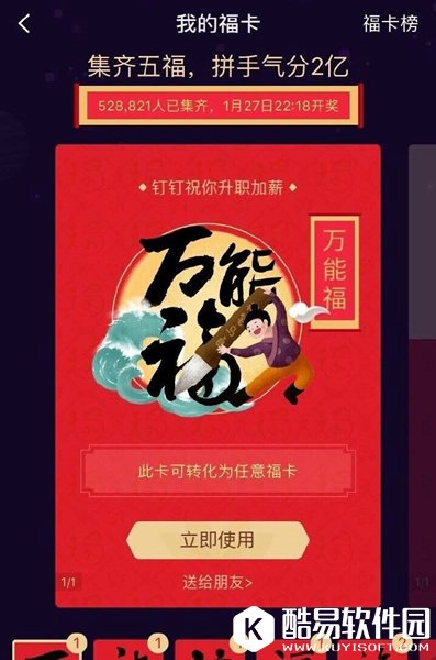 支付宝万能福卡作用是什么? 支付宝万能福顾名思义就是万能的,万能福可以当做任何一张“福”来用。一张万能福卡就能代替支付宝五福里的任意一张,如果能够多获得几张支付宝万能福卡,就再也不怕没有敬业福啦!
