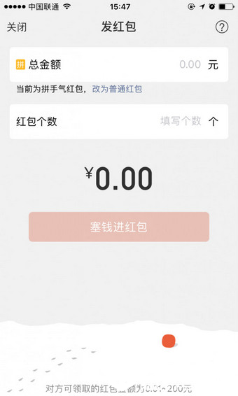 3、点开后,其实怎么发红包跟之前的还是一样。但红包金额数显示为01~200元。