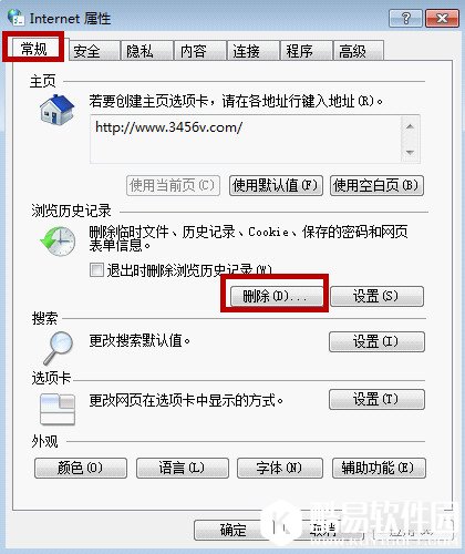 进入了internet属性窗口选项。这时候点击“删除”按钮。