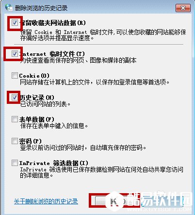 在出现的“删除浏览的历史记录”中选中如图所示的几个选项,点击“删除”(注意,如果你不需要你的cookie、电脑记住的密码、以及一些表单的话,也可以勾上,但是为了你方便地利用以前的数据,建议不要删除)