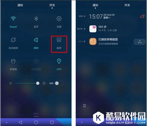 截图方法二:下拉菜单开关快捷截屏