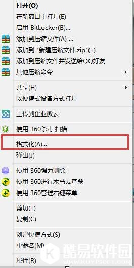 2、如果是“FAT32”格式的,就需要转换为“NTFS”格式了,我们要先格式化U盘,由于格式U盘会清空U盘里的文件,所以U盘里有重要文件的先将文件复制到电脑上。然后右键U盘,选择“格式化”。