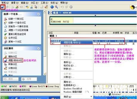 选择调整分区/移动分区 ,然后将激活下面的图片