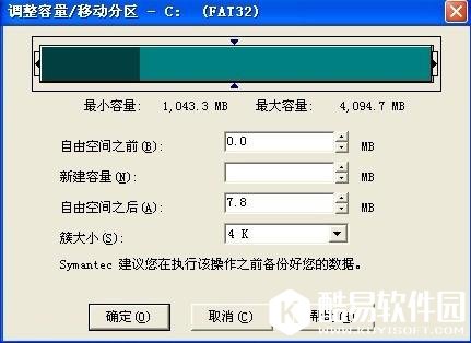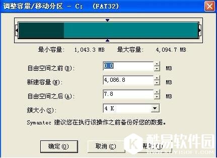 在图片上将看到 新建容量单位为MB (附1G=1024MB=1024*1024K) 用表单内显示的大小--你要分出的大小=调整时输入的大小,例如.显示的大小是4,086.8(M),我想分出1(G) 也就是1024(M),用4086(0.8可省略,如果不是要求很精确,只要算成1G=1024M,且去掉零头计算),这里去掉零头的意思就是把4086.8M当4000M来算,在把1G=1000M来计算,就可以容易算了.所以这里我们就用4000-1000=3000M,我们就在新建容量里输入3000即可。