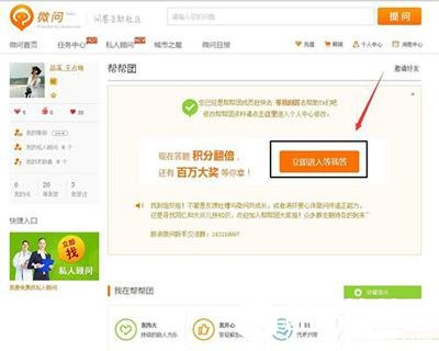 6、点击后打开如下窗口,在此窗口中有一个“立即进入等我答”按钮,点击它进入帮帮团窗口内部。