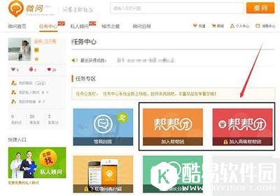 4、点击后打开如下窗口,在此窗口上方点击“任务中心”按钮,进入任务中心去申请加入帮帮团。