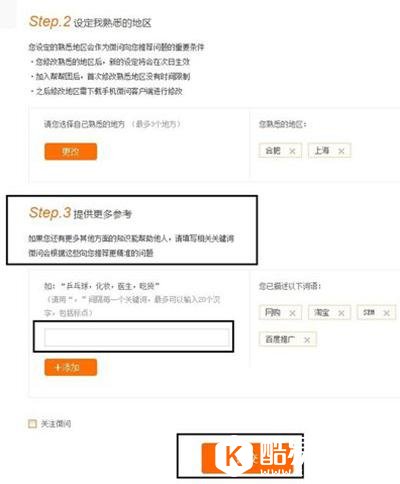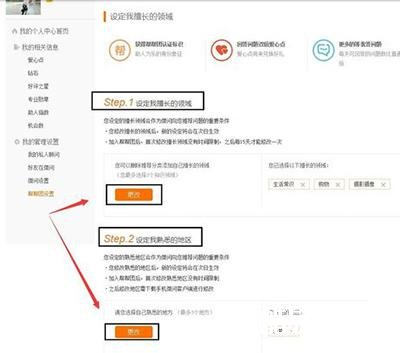 8、点击打开如下窗口,在此窗口中可以看到:设置我擅长的领域,设置我熟悉的地区,按照上面的提示进行相关的设置。