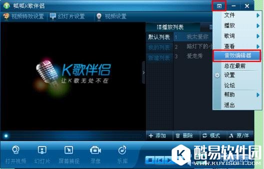 4、新增自动均衡功能 点击主界面右上角的总菜单键,选择“音效编辑器”