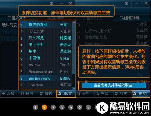 1、新增原/伴唱切换功能