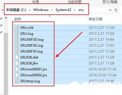 4、在电脑进入安全模式后,我们直接快捷键“Win+E”打开文件资源管理器,然后按照以下路径打开:C:WindowsSystem32sru ,将里面的文件全选后删除。注意:不是删除sru,只是删除里面的所有文件哦。