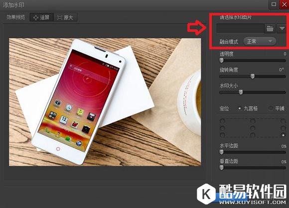 然后在打开的水印添加对话框界面右上角,选择水印文件,这里我们找到自己之前制作好的图片水印即可,如下图所示: