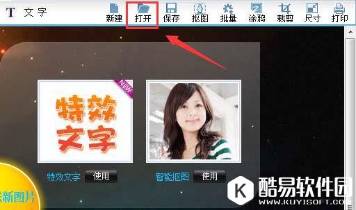 3、点击打开选项,弹出打开图片对话框 4、在该对话框内找到我们需要编辑的图片,点击打开进入图片编辑操作界面,如图所示: