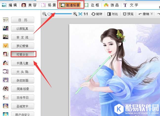 5、在该界面内找到高清场景选项,并在高清场景选项里找到可爱女生选项,如图所示: