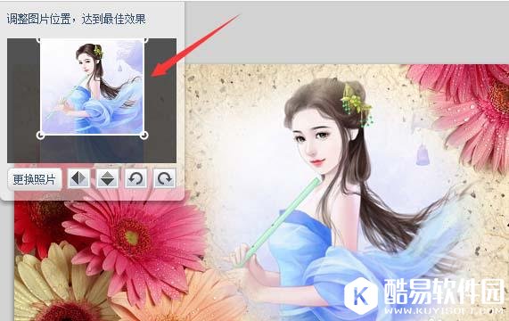 7、点击我们的选项,进入其编辑操作界面,在该界面内的调节窗口里调节图片的显示范围,如图所示: