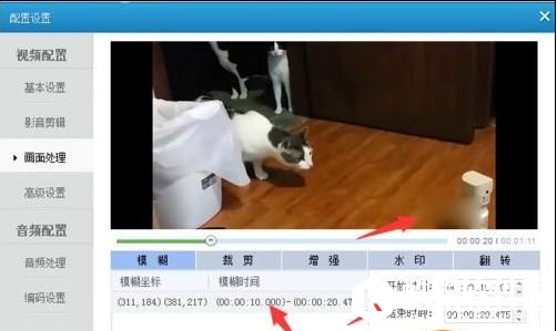 5、模糊选项,开始时间,结束时间,指的是模糊的区域,以及模糊区域模糊的时间。