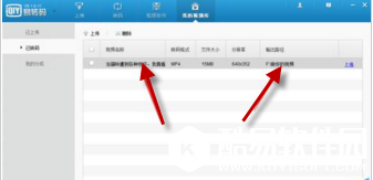 10、会出现我们做好的视频,后边是输出路径,根据自己需要选择哦,也可以直接上传视频到爱奇艺。视频后边有个上传键哦。