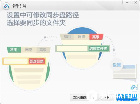 2.您可以通过两种方式设置同步文件夹的位置: 方式一:在登录完成之后,客户端会自动弹出配置向导,如下图: