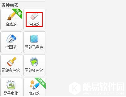 3、在编辑界面的左边,点击选择使用工具中的“各种画笔”中的“消除笔”,涂抹需要去除的水印部分,等待它的处理。如果一次不到位,还可以进行对此处理,这样得到的效果才会更好。如果在处理过程中出现失误,还可以点击取消上一步的操作。如图所示: