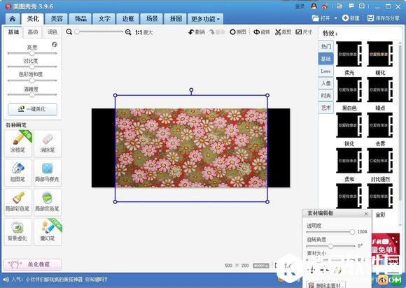 4、把中间部分用一张白色图片盖住,鼠标右键添加图片,添加白色图片,最好先把那两个字合并了,然后再合并白色图片。(白色素材以及印花素材的图片在最下方便可看到)