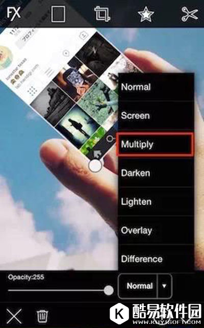 4、点击右下角的Normal按钮,点击第三个Multiply,就是把图层状态从正常改为正片叠底;