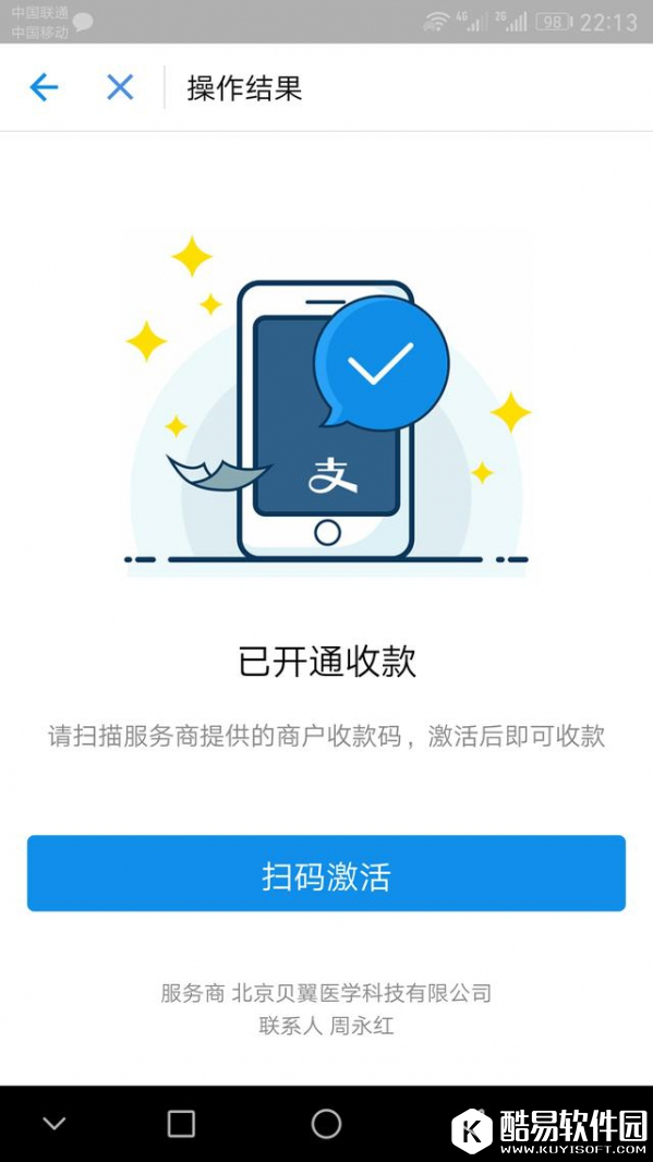 4、提交后进入自动审核页面。稍等一会儿,出现如下已开通收款界面: