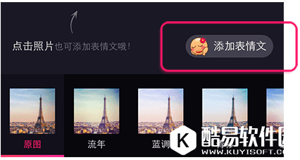 在照片编辑页面,点击想要在照片上添加表情文的地方,或点击“添加表情文”按钮,进入表情文添加页面。