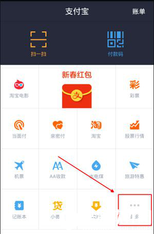1、成功登录进入支付宝钱包后,在主界面现下滑动页面找到【 更多】点击进入。