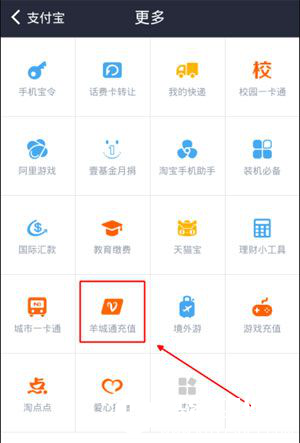 2、进入更多页面之后,点击【 羊城通充值 】应用图标。