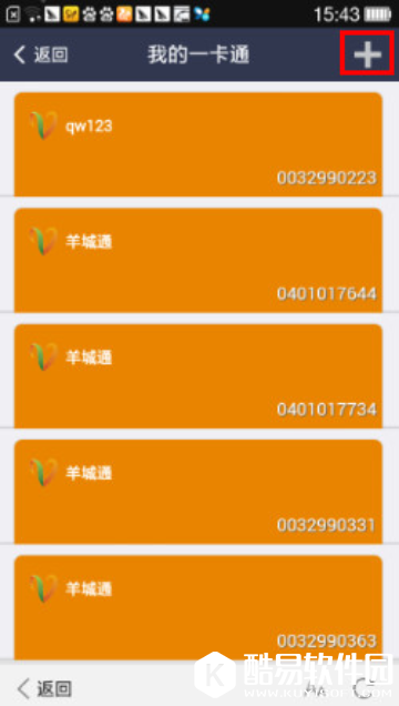 3、页面会显示添加过的可充值转账的卡,添加新卡点击右上角“+“号增加