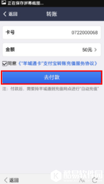 当羊城通自助充值机读取到我们的羊城通信息后,页面上就会出现之前我们用支付宝给羊城通充值的50元金额,这时我们就点击页面上的50元选项。 注意:此时是不需要插入现金或者银行卡到羊城通自助充值机的,因为这个50元钱就是我们之前用支付宝给羊城通充值的那50元钱,也就是说我们已经付款了,现在只是进行最后的飞充操作。