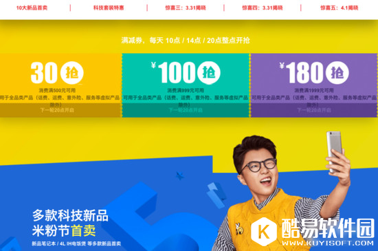 据小米联合创始人、总裁林斌透露,2017年米粉节将于4月6日开始,持续4天。现在小米官网也已焕然一新,届时不仅会有线上电商五折狂欢,还有线下百店同庆。值得一提的是,今年也是小米7周年生日,小米不仅准备了1亿红包,以及低至5折券,同时还将于3月31日、4月1日、4月5日公布三大惊喜。 用户登陆小米官网还可抢满减券,有30元(消费满500元可用)、100元(消费满999元可用)、180元(消费满1999元可用)三种,每天10点、14点、20点整开抢。