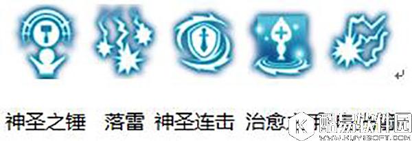 神圣之锤可以召唤光之锤给敌人带来巨大伤害,可以用来衔接击飞技能使得敌人持续浮空更好的进行连击,保证自身打出更多伤害。 落雷可以将敌人击到空中,召唤闪电进行攻击,是祭司的主要控制浮空技能。 神圣连击可以让自身进行冲锋同时进行快速的连续攻击,除此之外,神圣连击的最后一下攻击同样可以将敌人击飞,可以作为控制技能对敌人进行控制。 治愈之手是祭司的招牌技能,可以召唤出恢复圣物,持续为自身进行回血,方便我们打消耗战。 电光箭作为一个单体高输出技能,可以向前召唤闪电,对敌人造成多次攻击,是我们在PVP中的主要输出技能。