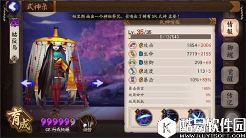 35级属性图,与SSR相比,基本持平。 我将姑获鸟定位为完美的输出式神。再说下个人认为与目前主流的输出式大天狗,小黑,茨木的对比.大天狗由于其4段大招的特性,在游戏中后期配合针女,输出会超过姑获鸟,由于本非酋没有,所以不多陈述。茨木作为ssr中人气超高的一拳超人,不得不说确实有其变态之处,大蛇高层无法自动。除此之外,SSr在获取以及养成方面相比SR卡还是有一定差距,茨木相比于依赖针女的式神更难成型,需要投入的成本更高。小黑作为最容易入手的主流输出式神,主要缺点仍然是对单一目标的乏力以及boss战。 而纵观游戏的各个阶段,姑获鸟在斗鸡,觉醒,大蛇,狩猎战,带狗粮等游戏的每个部分,都能做到高效的输出。 二 御魂选择 姑获鸟作为输出的核心御魂,就是针女,多段式神之所以能够大放异彩,很大程度上取决与针女,姑获鸟的御魂选择,必须选择4针女,4针女,4针女,重要的事情说三遍,在游戏初期中期,应该选择针女四件套以及两件暴击套装,六号位一定选择暴击御魂,尽量将暴击堆凑到一个较高的水平,在这我也想纠正一个误区,中前期三星四星5星的御魂,差距并不到,在前期爆肝刷到一套针女之后,应该选择这之中副属性较为出色的进一步强化,三星强化到15,也可以直接过度到6星,合适的副属性,会让你的面板更加出色,3星与5星的差距,只有百分之四而已,而四条优秀的分属性,其价值明显高于百分之四的差距。